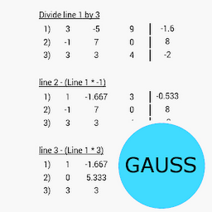 In linear algebra, Gaussian elimination (also known as row reduction) is an algorithm for solving systems of linear equations. It is usually understood as a sequence of operations performed on the associated matrix of coefficients. The method is named after Carl Friedrich Gauss.What's new in Gaussian elimination App 1.1